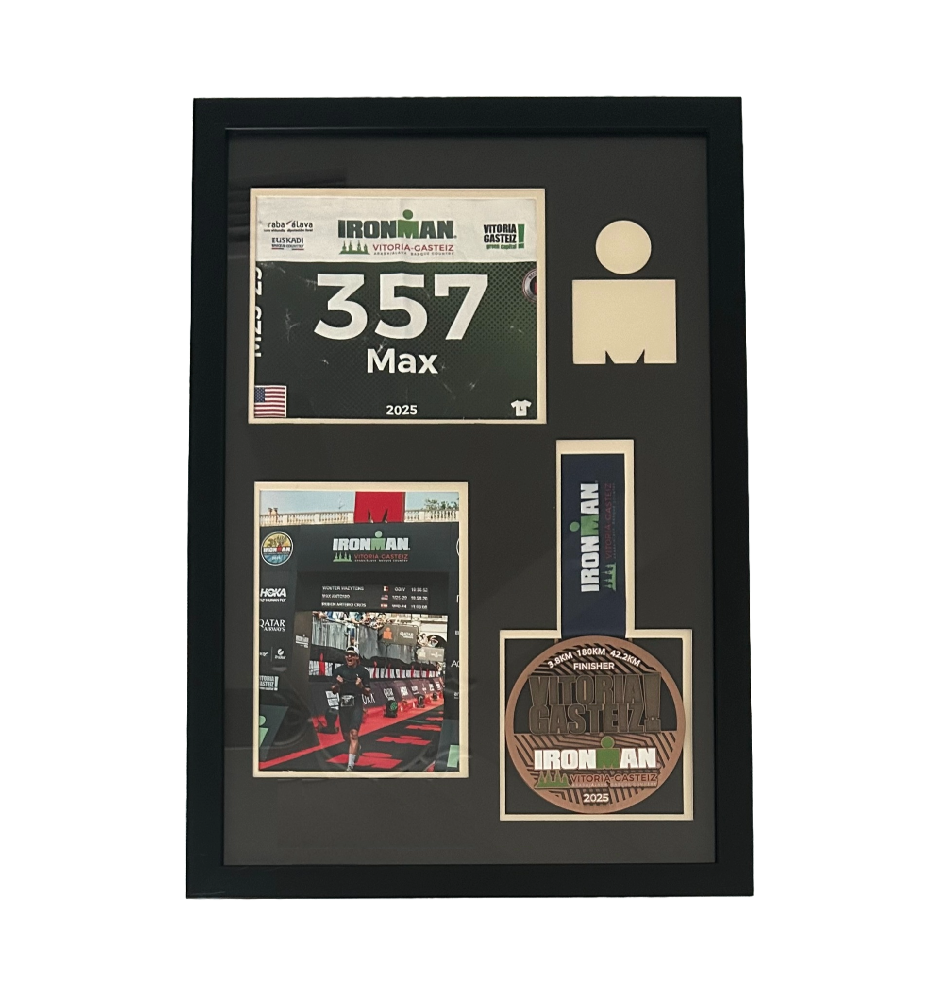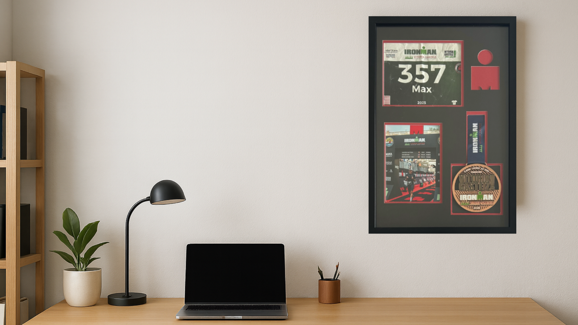 Our custom frames transform your medals, bibs, and race memories into captivating works of art. Every frame celebrates not just your victory, but the journey of grit, sweat, and dedication it took to get there.